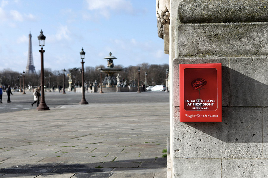 Dans des lieux romantiques de Paris et d’Amsterdam, des boîtiers d’urgence ont été installés, chacun contenant une seule rose Red Naomi. Les passants étaient invités à briser la vitre et à s’approprier la rose lors d’un élan romantique spontané. Cette action créative a enchanté habitants et visiteurs, tout en ouvrant ces villes à la connexion humaine et à l’expression de l’affection.