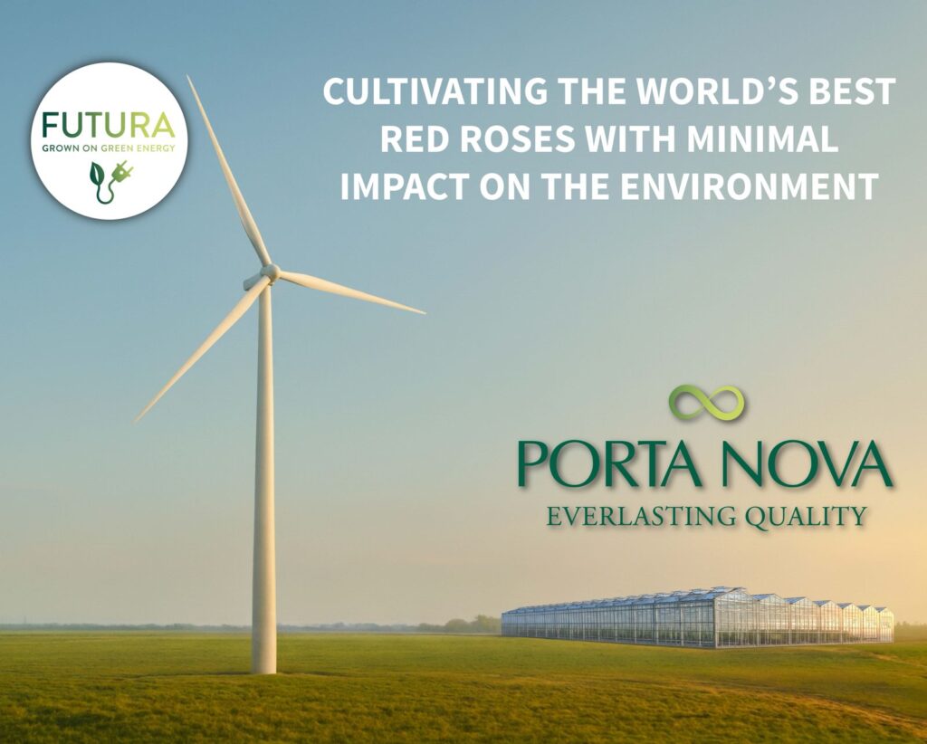 Poiché il mio lavoro è completamente sostenibile, eco-friendly e privo di spugna floreale, la scelta delle rose Porta Nova sostiene anche il mio impegno verso una floricoltura responsabile dal punto di vista ambientale, soprattutto perché la loro linea “Futura” è prodotta con la più bassa impronta di carbonio nel mercato europeo. Dal 2023, queste rose vengono coltivate utilizzando energia eolica al 100%.